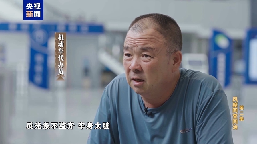 機動車代辦員:說你行你就行,不行也行;說你不行就不行,你行也不行。反光條不整齊,車身太臟,棚桿不齊,大梁號不清呀,是吧。車身車貌,都可以隨便找一個毛病。他那個人就是只認一個字,錢。