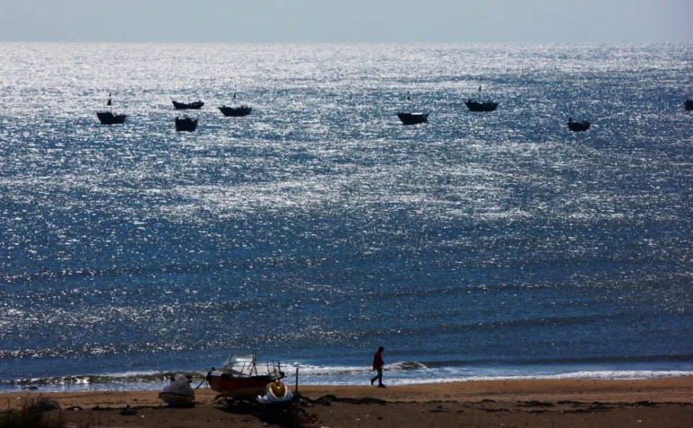一名男子走在覺華島的沙灘上。新華社記者 郭求達(dá) 攝