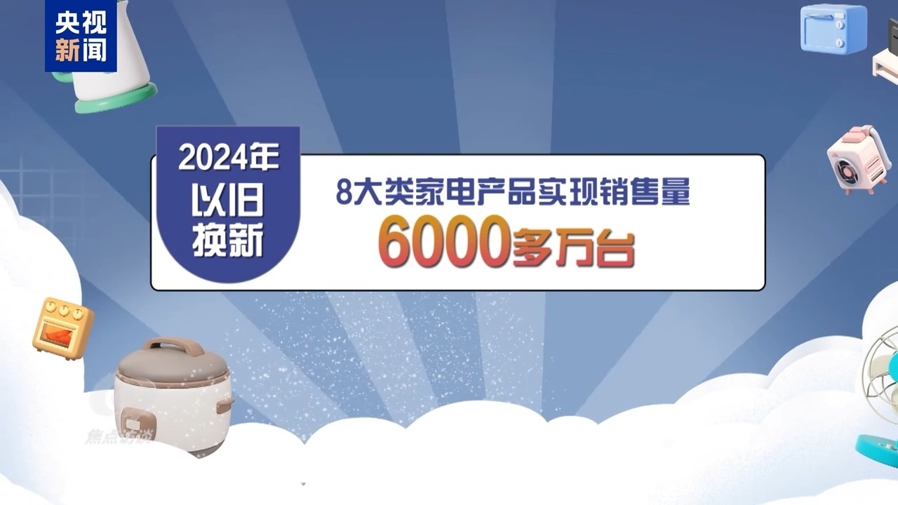 好政策帶來了好成效。以家電市場(chǎng)為例,2024年,中央加力支持以舊換新8大類家電產(chǎn)品實(shí)現(xiàn)銷售量6000多萬臺(tái),直接拉動(dòng)消費(fèi)超2600億元。