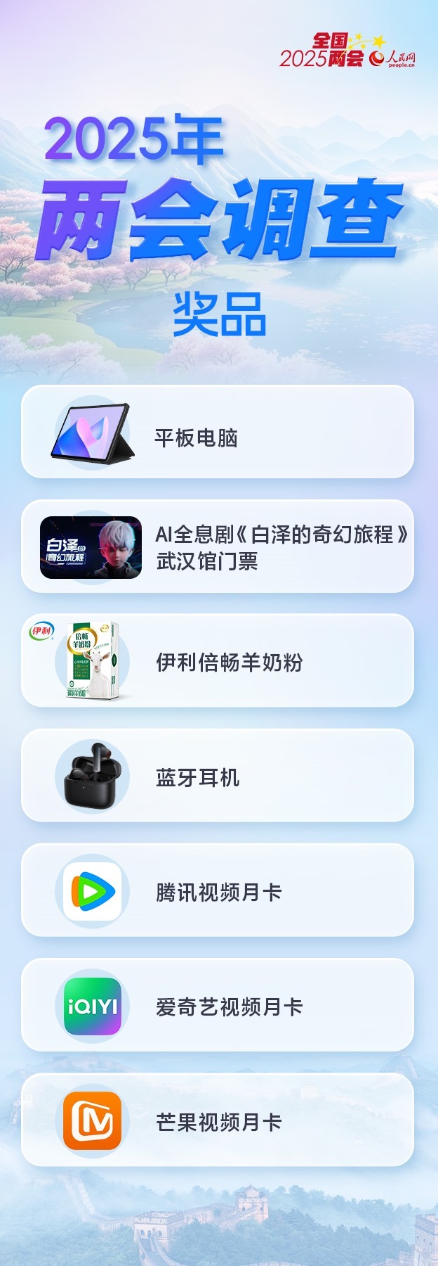 人民網(wǎng)2025年全國兩會調(diào)查持續(xù)進(jìn)行 精美獎(jiǎng)品等您來拿