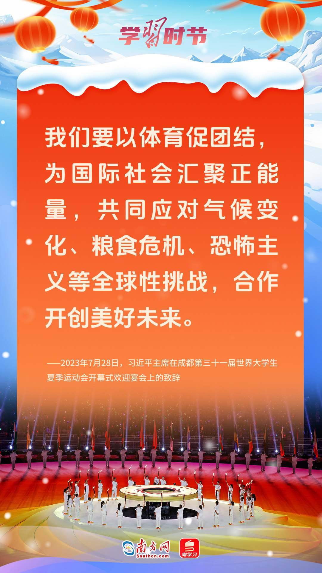體育是增進人民友誼的紐帶,習近平總書記多次強調(diào)以體育促進團結(jié)與和平,推動國之交、民相親。這個元宵節(jié),讓我們一起重溫習近平總書記的深刻話語,以體育精神匯聚團結(jié)和平力量。