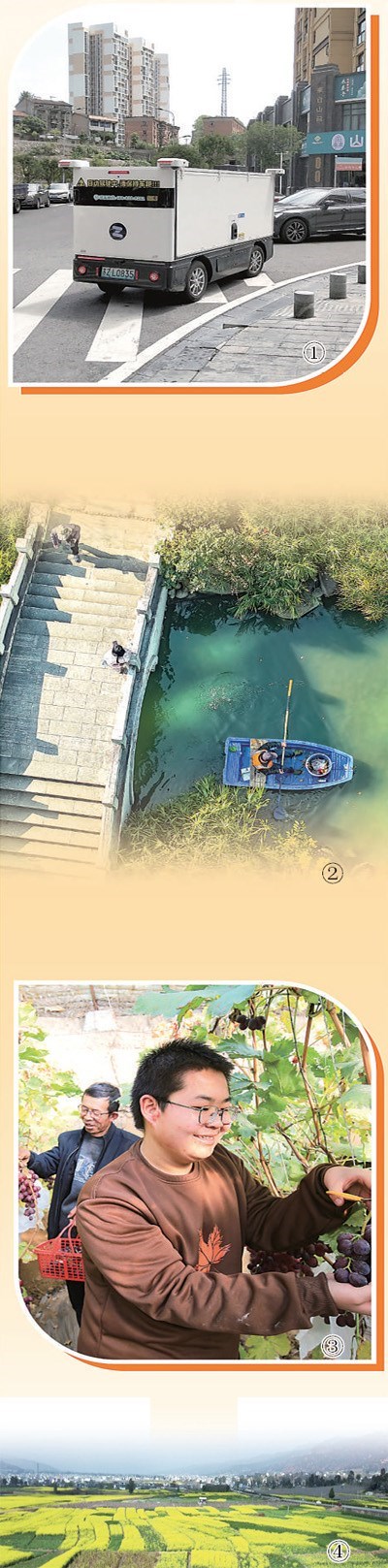 圖①:一輛無(wú)人駕駛快遞車(chē)行駛在湖北宜昌市夷陵區(qū)小溪塔街道道路上。