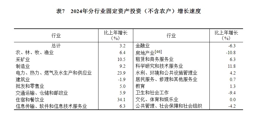 [41]由于投資統(tǒng)計制度方法改革、第五次全國經(jīng)濟普查數(shù)據(jù)修訂、統(tǒng)計執(zhí)法檢查等因素,2024年固定資產(chǎn)投資相關(guān)指標增速按可比口徑計算。