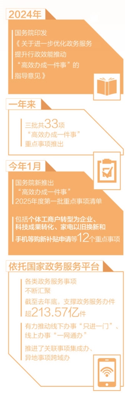 政府工作報(bào)告提出,“健全‘高效辦成一件事’重點(diǎn)事項(xiàng)清單管理和常態(tài)化推進(jìn)機(jī)制,完善覆蓋全國(guó)的一體化在線政務(wù)服務(wù)平臺(tái)?!?/p>