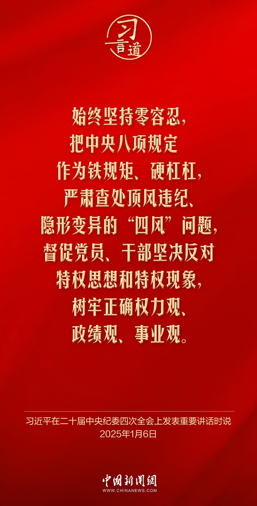 黨中央決定,自2025年全國兩會(huì)后至7月在全黨開展深入貫徹中央八項(xiàng)規(guī)定精神學(xué)習(xí)教育。黨的作風(fēng)就是黨的形象,關(guān)系人心向背,決定黨和國家事業(yè)成敗。習(xí)近平總書記高度重視作風(fēng)建設(shè),就貫徹落實(shí)中央八項(xiàng)規(guī)定精神、深化作風(fēng)建設(shè)作出一系列重要論述——