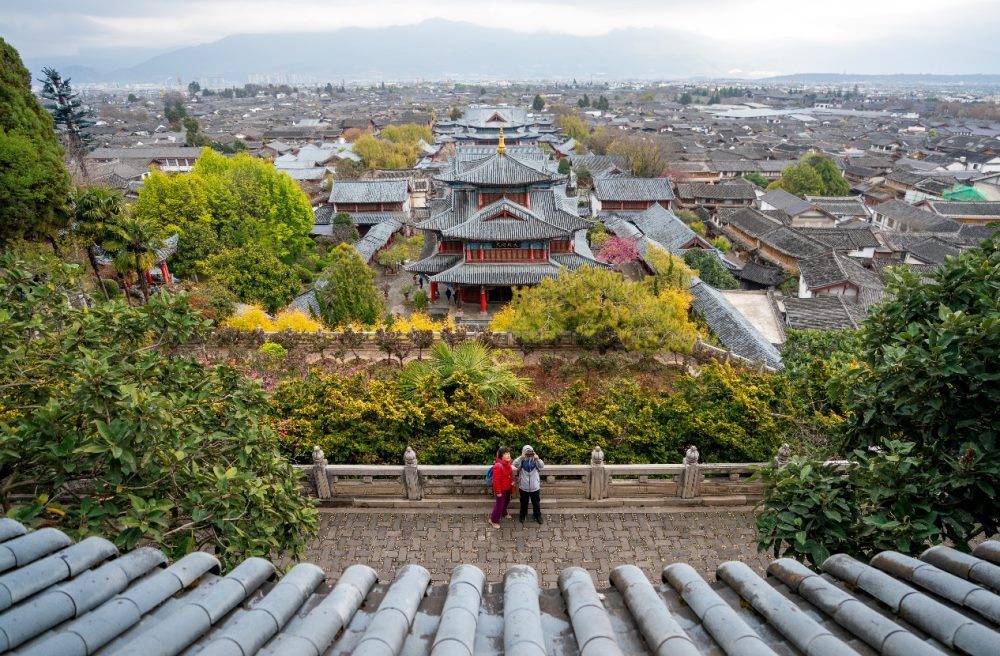 近日,游客在麗江古城木府游玩。新華社記者 陳欣波 攝