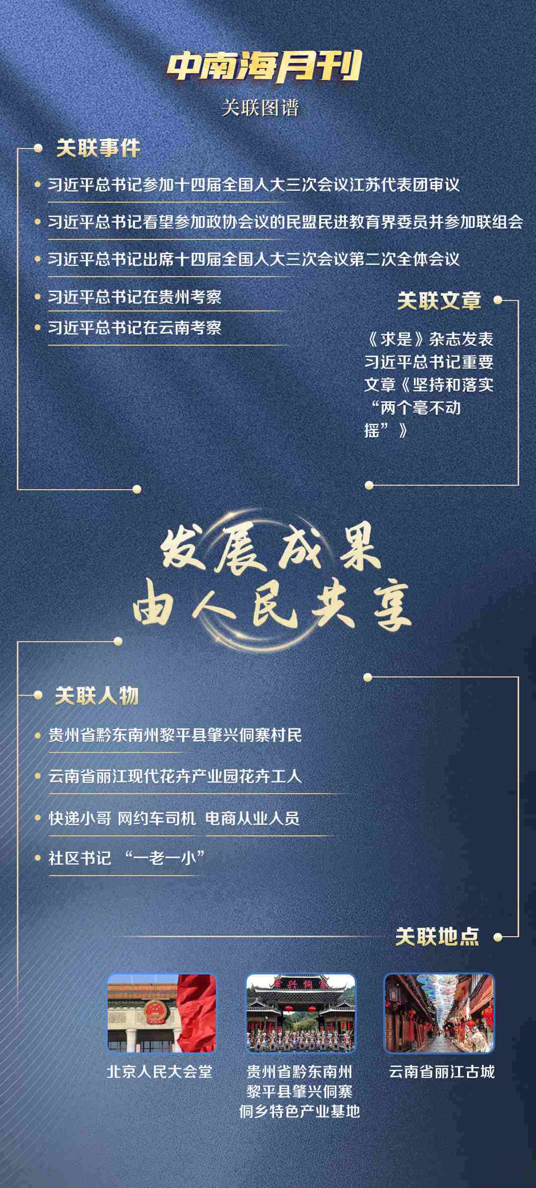 觀察央視網(wǎng)I學習數(shù)據(jù)庫生成的3月關聯(lián)圖譜,無論是對高質量發(fā)展的謀篇布局,還是推動優(yōu)秀傳統(tǒng)文化守正創(chuàng)新,“發(fā)展成果由人民共享”的理念始終貫穿其中,“致廣大而盡精微”的治理方法也清晰可見。