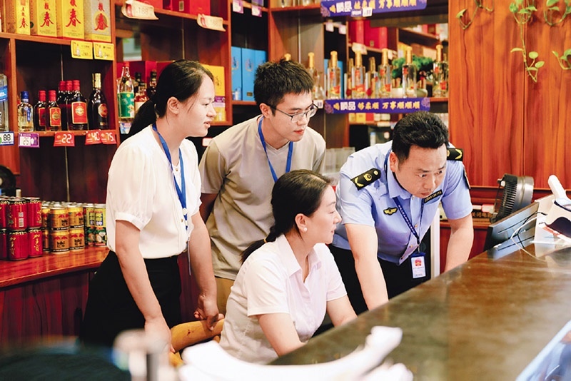 各地紀檢監(jiān)察機關聚焦違規(guī)吃喝隱形變異問題,深入酒店、飯店、單位食堂等重點場所開展專項監(jiān)督檢查,堅決防止違規(guī)吃喝歪風反彈回潮。圖為2025年4月18日,重慶市銅梁區(qū)紀委監(jiān)委和區(qū)市場監(jiān)管局工作人員在轄區(qū)某飯店了解情況。 中央紀委國家監(jiān)委網站供圖 馬冬曉/攝