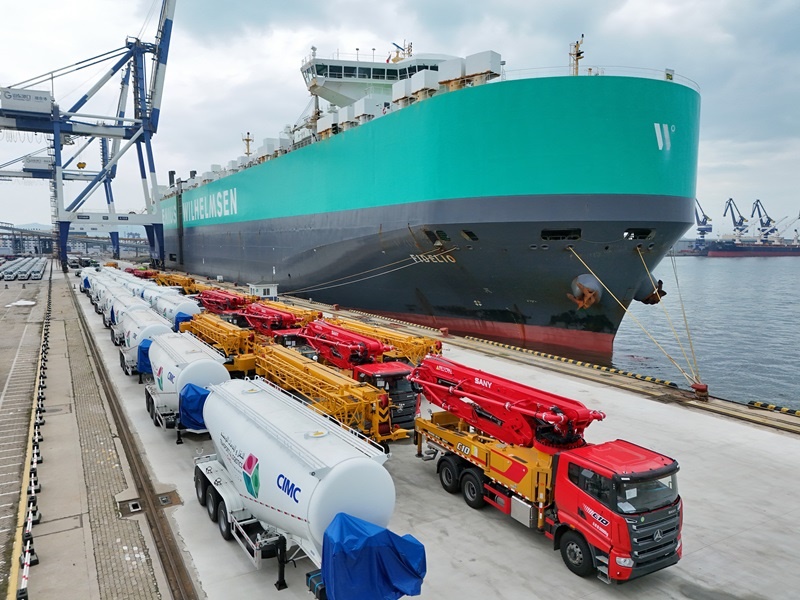 連日來,在山東港口煙臺港,大批出口車輛集結(jié)待發(fā),汽車運輸船穿梭往來,一派繁忙景象。今年1—5月,煙臺港完成商品車運量29.6萬輛。目前,煙臺港已實現(xiàn)全球主要商品車碼頭全覆蓋、全聯(lián)通,形成“以航線帶貨源、以貨源促航線”的良性循環(huán)。