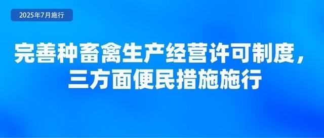 農(nóng)業(yè)農(nóng)村部公布了《種畜禽生產(chǎn)經(jīng)營許可管理辦法》,于2025年7月1日起實(shí)施?!掇k法》規(guī)定了三方面便民措施。一是統(tǒng)一平臺辦理。種畜禽生產(chǎn)經(jīng)營許可證的申請、受理、審核、核發(fā),統(tǒng)一在中國種業(yè)大數(shù)據(jù)平臺辦理,平臺提供查詢、核驗(yàn)等功能,并與全國一體化在線政務(wù)服務(wù)平臺對接。二是統(tǒng)一有效期。《辦法》將有效期統(tǒng)一確定為5年,并明確已取得的種畜禽生產(chǎn)經(jīng)營許可證有效期不變,到期后按照新規(guī)定辦理。三是簡化變更手續(xù)。對變更生產(chǎn)經(jīng)營者名稱、法定代表人(負(fù)責(zé)人)以及從事父母代種畜禽(含品種和配套系)和商品代仔畜、雛禽生產(chǎn)經(jīng)營,需要變更其生產(chǎn)經(jīng)營的畜禽品種的,向原發(fā)證機(jī)關(guān)提交變更申請表及證明材料,符合條件的,原發(fā)證機(jī)關(guān)在十五個(gè)工作日內(nèi)即予以變更。