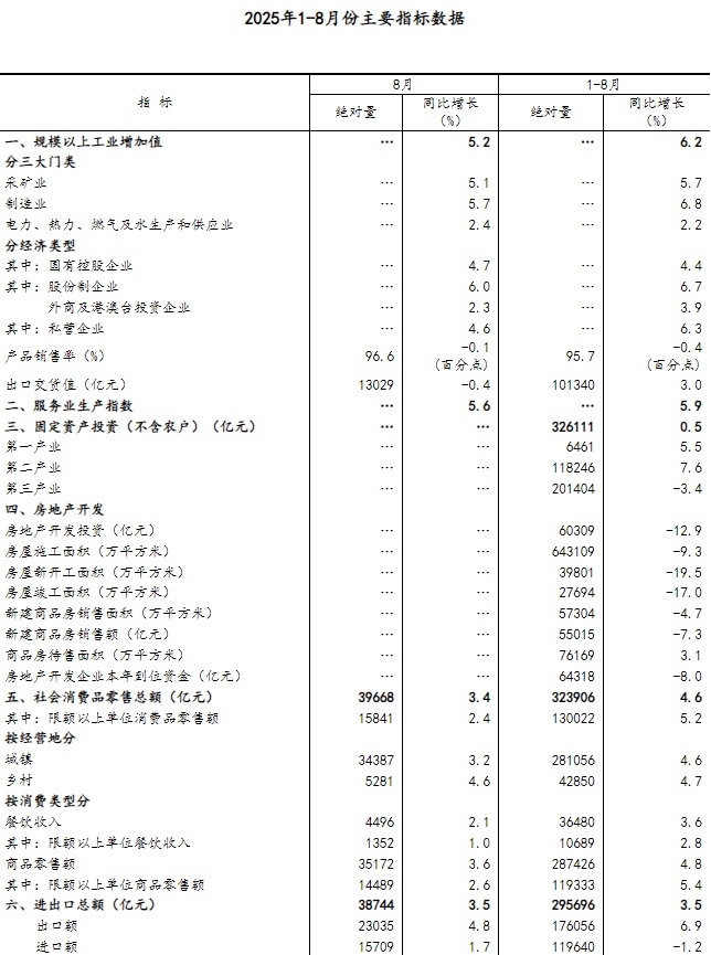 8月份國(guó)民經(jīng)濟(jì)運(yùn)行總體平穩(wěn)、穩(wěn)中有進(jìn)