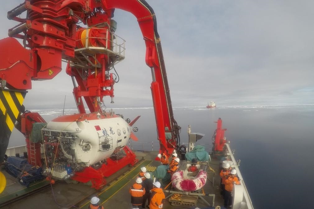 “蛟龍”號在北冰洋進(jìn)行首次下潛,“雪龍2”號提供保障支持。新華社記者 劉詩平 攝