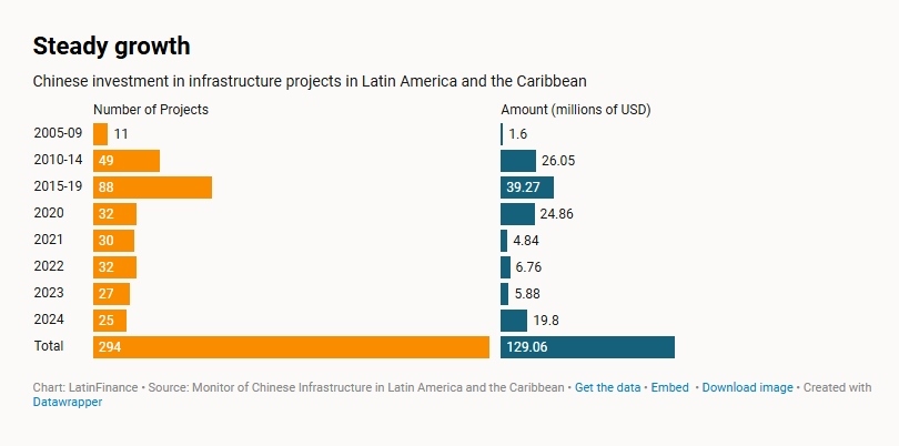 中國(guó)在拉丁美洲和加勒比地區(qū)投資基礎(chǔ)設(shè)施項(xiàng)目(來源:《拉美金融》)