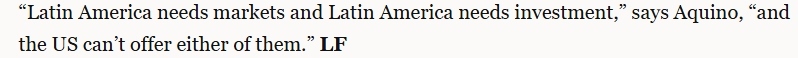 文章指出,并非所有人都對(duì)拉美與中國(guó)之間的合作感到滿意。華盛頓尤其擔(dān)心。不過,許多人認(rèn)為華盛頓影響拉丁美洲的能力有限。文章援引利馬國(guó)立圣馬科斯大學(xué)的亞洲經(jīng)濟(jì)專家卡洛斯·阿基諾的話指出,“拉丁美洲需要市場(chǎng)和投資,但美國(guó)無法提供其中任何一項(xiàng)”。