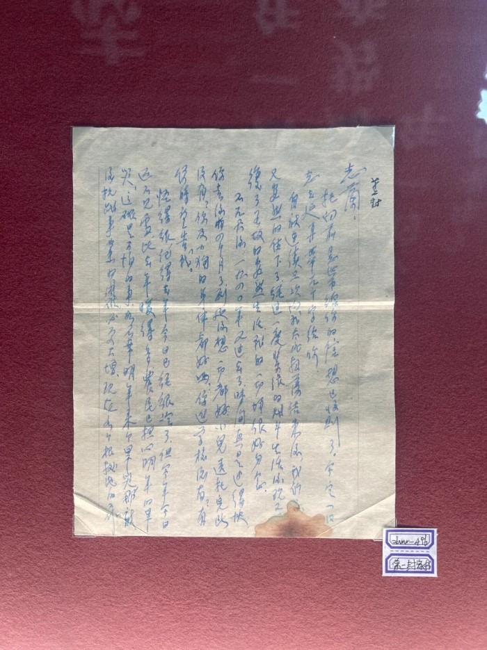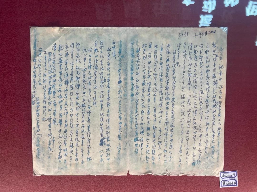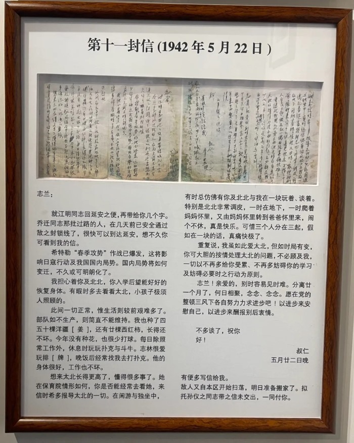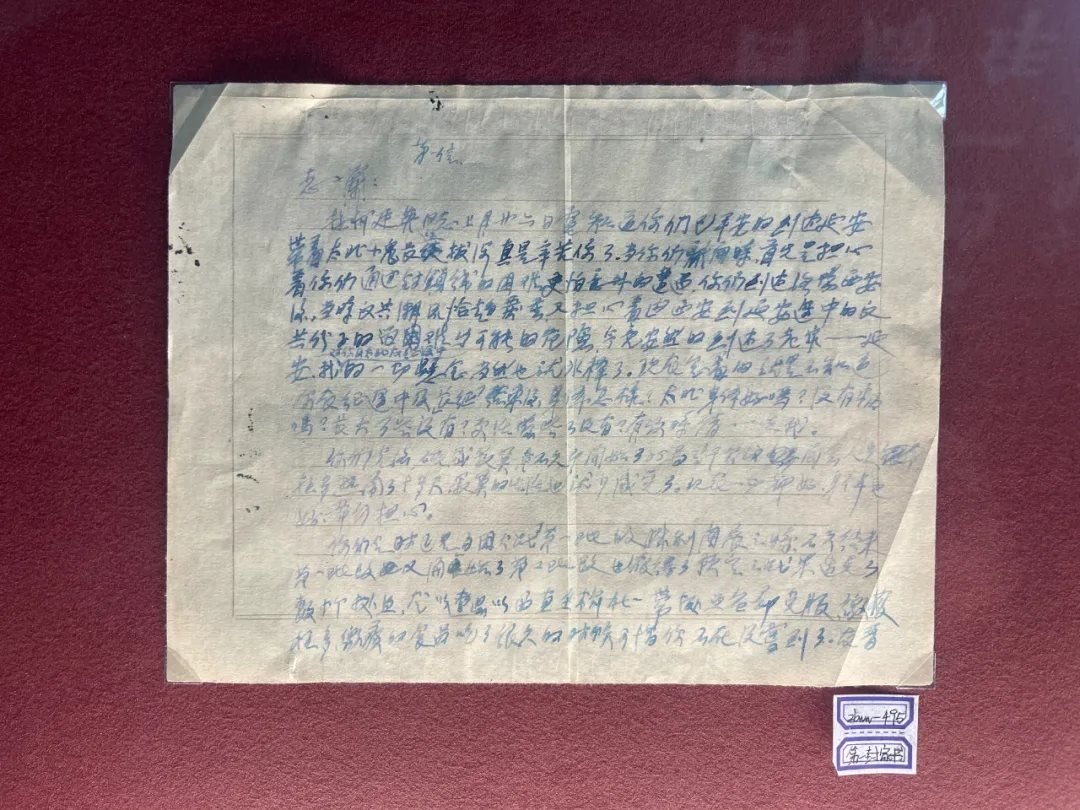 展出的左權將軍部分家書。(新華網 于楊 攝)