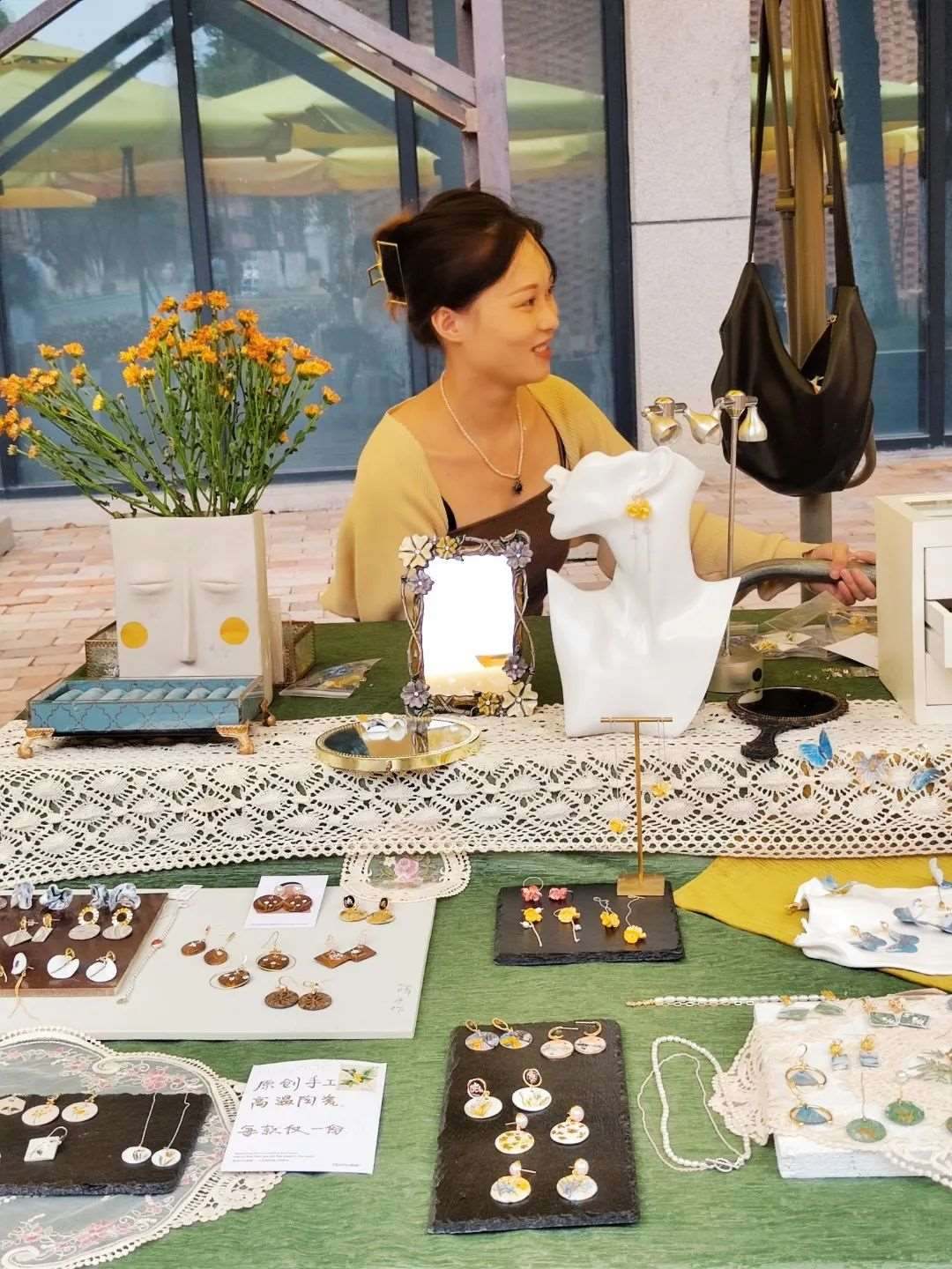 楊帆在江西景德鎮(zhèn)擺攤售賣自己設(shè)計的陶瓷飾品