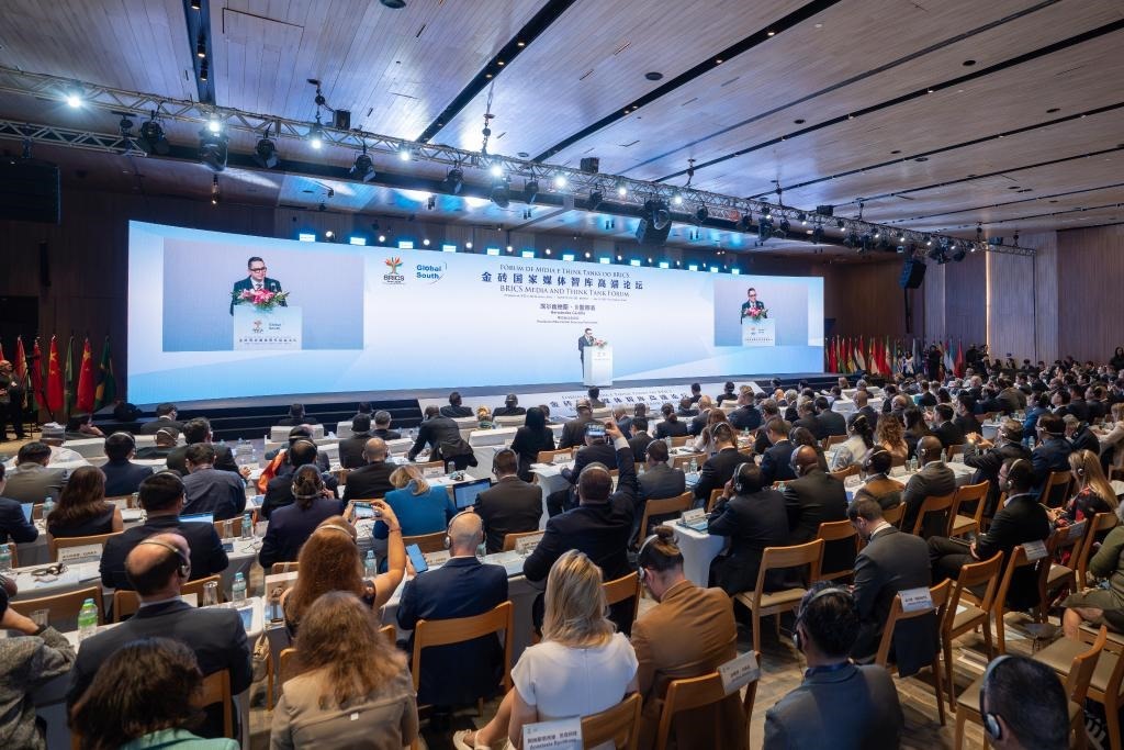 金磚國家媒體智庫高端論壇當(dāng)?shù)貢r(shí)間16日在巴西里約熱內(nèi)盧舉行。來自包括金磚成員國及伙伴國在內(nèi)的36個(gè)國家近150家媒體、智庫、政府機(jī)構(gòu)和企業(yè)以及中美洲議會(huì)等地區(qū)組織的250余名代表出席論壇,共話金磚國家媒體智庫在世界變局中的責(zé)任與擔(dān)當(dāng)。
