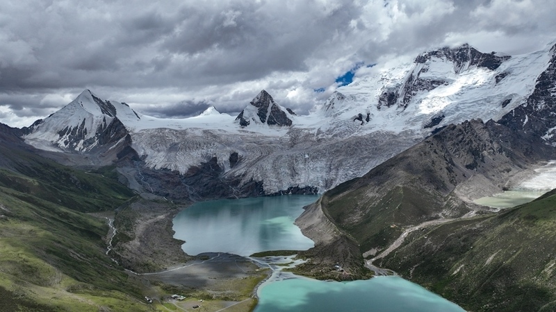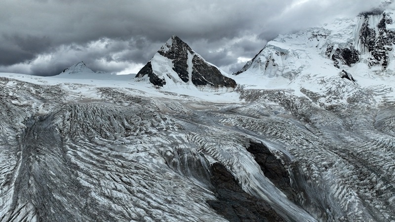 7月19日拍攝的薩普雪山及延伸的冰川(無人機(jī)照片)。