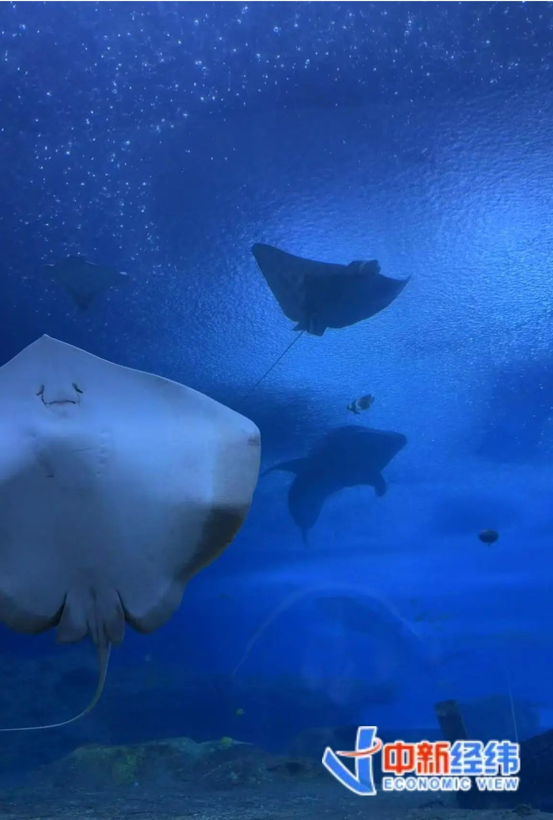 在海底區(qū),小林感到自己仿佛來(lái)到了海底世界的IMAX影廳,抬頭就能看到各種海底生物在頭上游過(guò)。晚上工作人員還會(huì)撤去警戒線,讓他們能與動(dòng)物更加貼近?!澳莻€(gè)時(shí)候的體驗(yàn),就是‘藍(lán)調(diào)時(shí)刻’,幽靜又神秘,抬頭就能看到鯨鯊巨物從頭頂游過(guò)。夜深一些,還能看到有小魚沉底睡覺(jué)休息?!毙×终f(shuō)道。