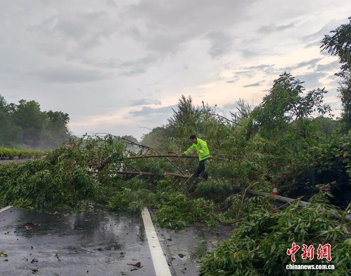 21日,云梧高速路政員清理被臺風吹倒的樹木。劉朦 攝