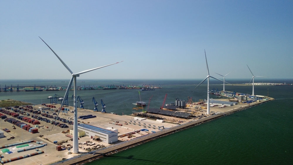 “4臺風力發(fā)電機一年可發(fā)電約7000萬千瓦時,足以覆蓋碼頭設(shè)備及??看暗挠秒娦枨?,冗余電量還能上網(wǎng)銷售?!鄙綎|省港口集團濰坊港有限公司黨支部書記、總經(jīng)理孫超說,濰坊港已形成風、光、氫“多能互補”的用能結(jié)構(gòu),每年可節(jié)省標煤2.1萬噸,減少二氧化碳排放5.7萬噸。