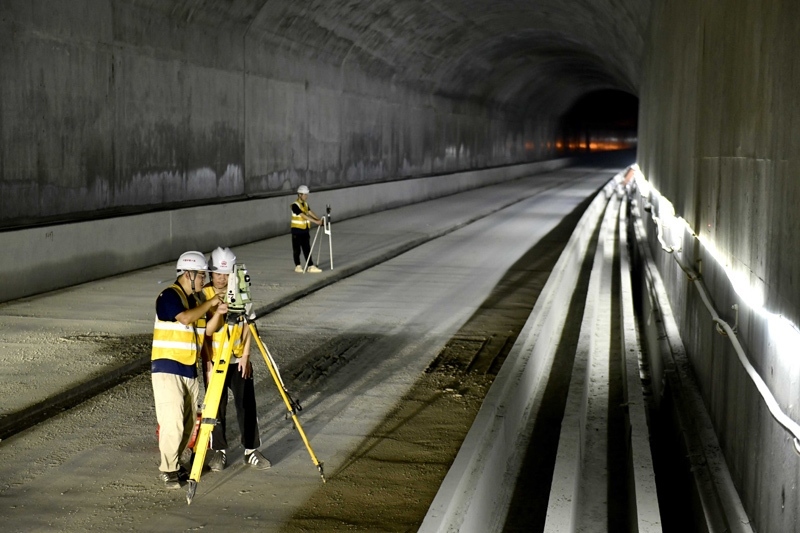 7月30日,在濟濱高鐵機場隧道內,中鐵十局的工作人員進行全斷面掃描,以獲取隧道內幾何形態(tài)。