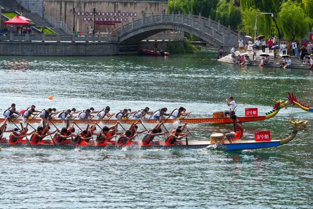 龍舟在本次世運會上首次成為正式比賽項目,這也符合世運會設項突出地域特色的特點。圖為貴州省黔東南苗族侗族自治州鎮(zhèn)遠縣?陽河上的龍舟比賽。新華社發(fā)(龍建睿攝)