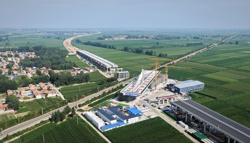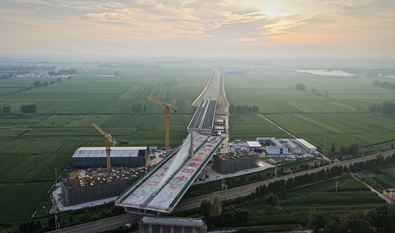 當(dāng)日,在山東德州,由中國鐵建投資集團投資建設(shè)、中鐵十四局集團承建的德州至上饒高速公路(簡稱“德上高速”)臨清連接線跨京九鐵路斜拉橋?qū)崿F(xiàn)精準(zhǔn)轉(zhuǎn)體對接。該橋采用不對稱矮塔斜拉結(jié)構(gòu),重達(dá)23500噸。