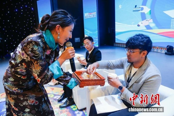 2024年8月18日,“同飲一江水 光影耀瀾湄”2024瀾湄國際影像周在青海省玉樹藏族自治州玉樹市正式啟動。圖為來自瀾滄江-湄公河流域國家的6名青年代表品嘗玉樹酸奶、奶酪等當?shù)靥厣r(nóng)畜產(chǎn)品。中新社記者 馬銘言 攝