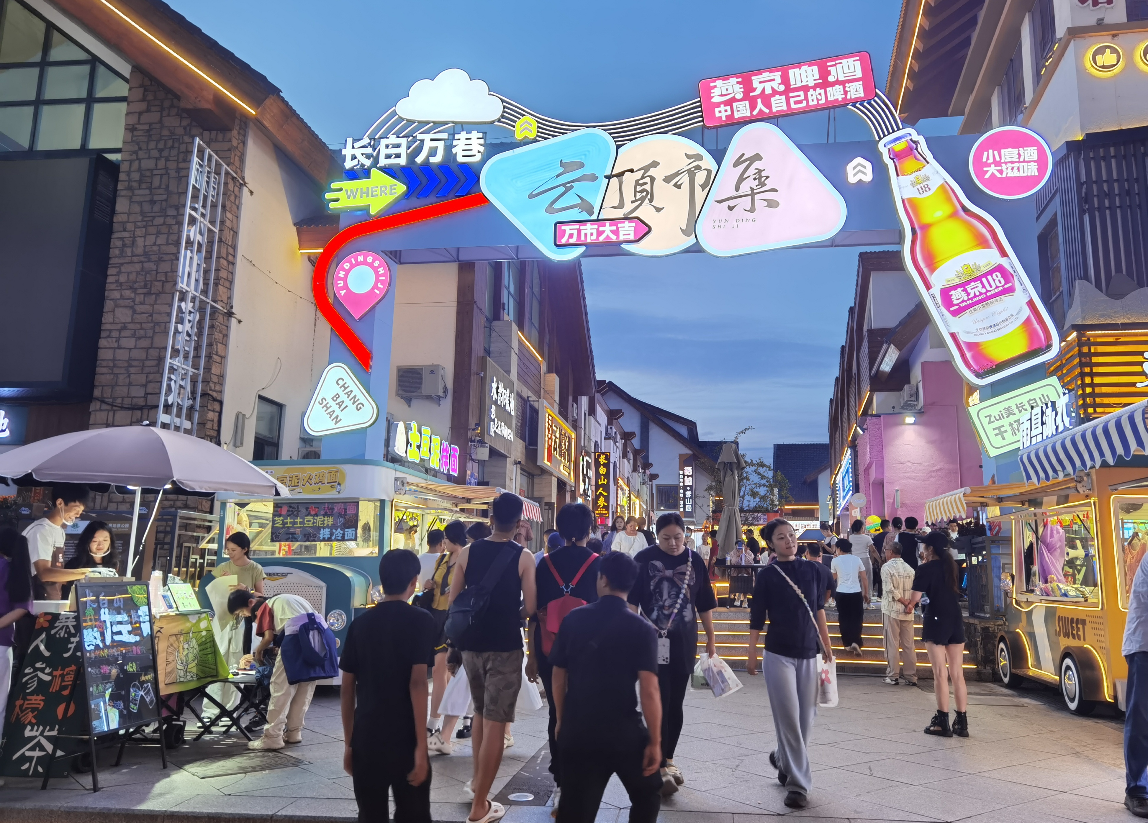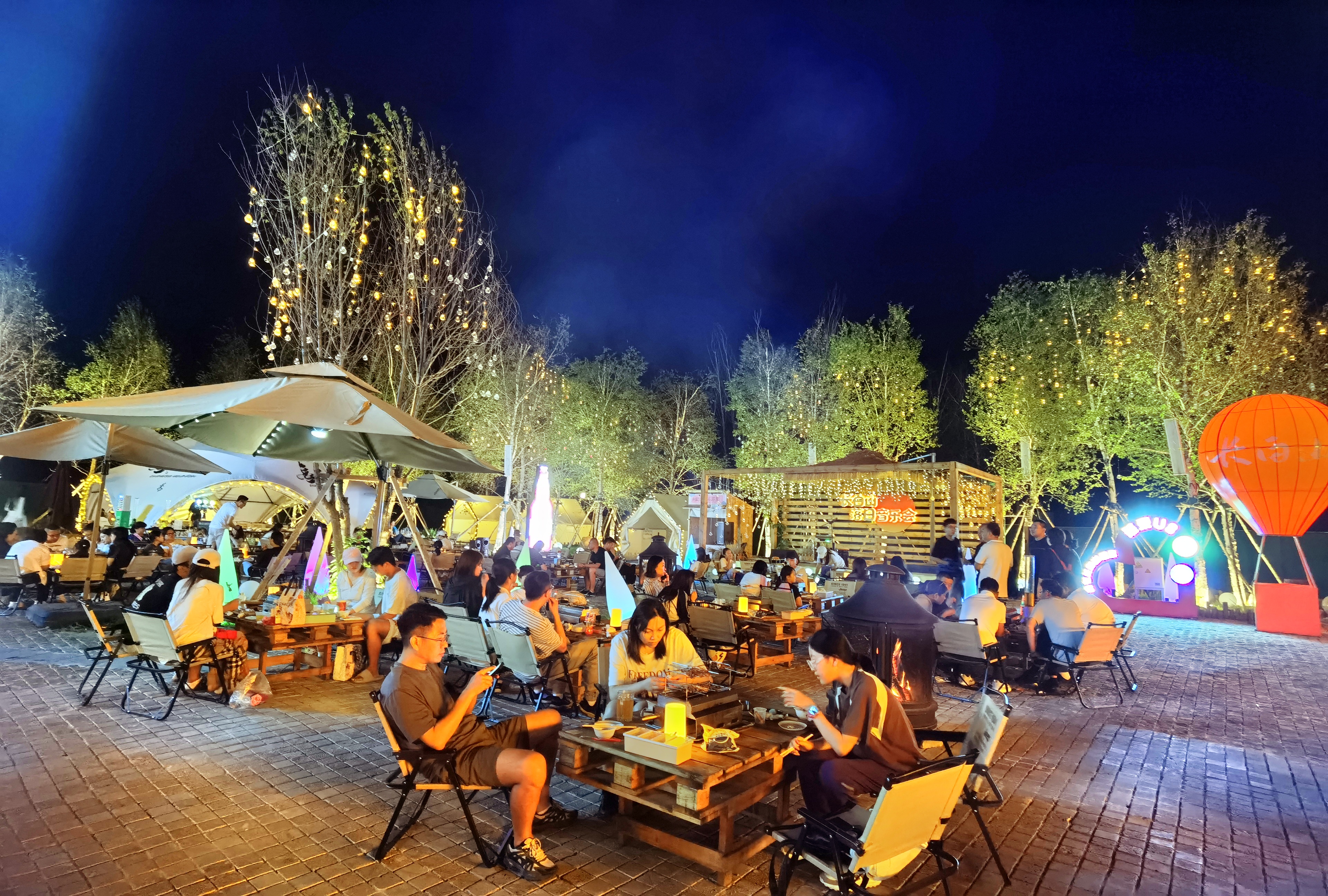 夜幕初降,云頂市集人潮涌動(dòng),樂隊(duì)彈唱與林間松風(fēng)交織;雪絨花音樂生活館里,燈光璀璨,民謠悠遠(yuǎn);美人松愛情森林里,漫步其間的情侶與家庭,寫下屬于他們的浪漫記憶。更令人驚艷的,是今夏盛大開街的恩都里(滿語enduri意為“神靈”)休閑度假商旅社區(qū)。