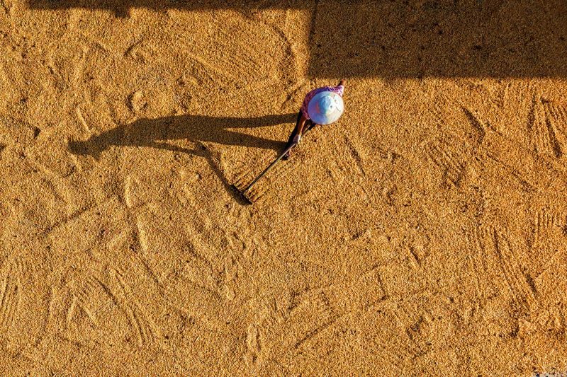 8月30日,云南省勐臘縣勐侖鎮(zhèn)大卡村農(nóng)民運送剛收獲的水稻(無人機(jī)照片)。