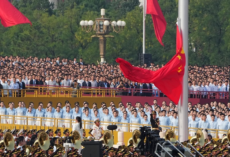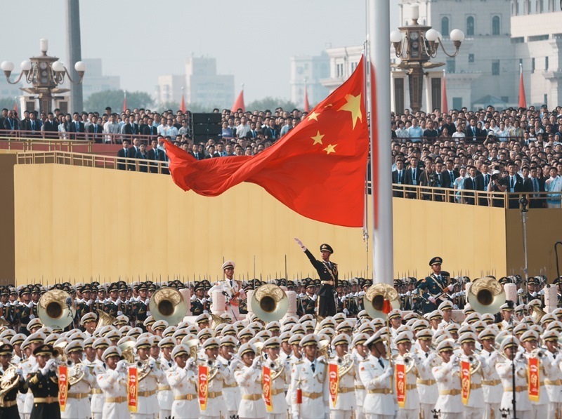 9月3日,紀念中國人民抗日戰(zhàn)爭暨世界反法西斯戰(zhàn)爭勝利80周年大會在北京隆重舉行。這是天安門廣場舉行隆重的升國旗儀式。