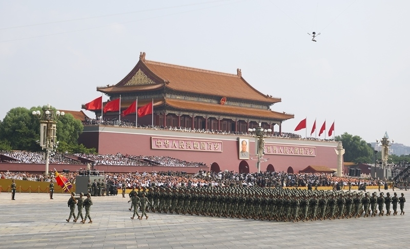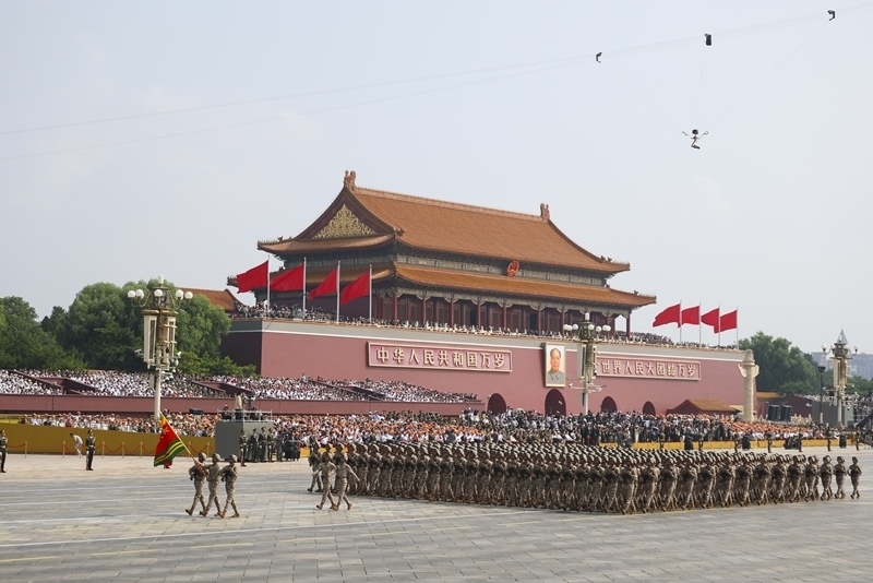 9月3日,紀(jì)念中國人民抗日戰(zhàn)爭暨世界反法西斯戰(zhàn)爭勝利80周年大會在北京隆重舉行。這是徒步方隊通過天安門廣場。