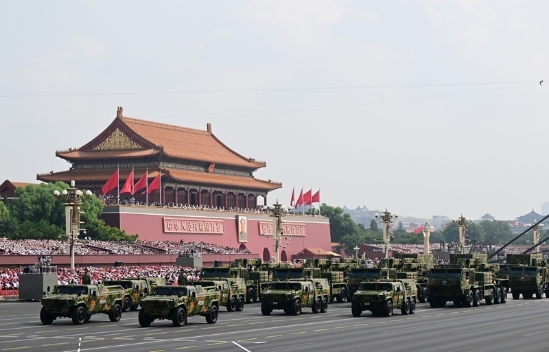 9月3日,紀(jì)念中國人民抗日戰(zhàn)爭暨世界反法西斯戰(zhàn)爭勝利80周年大會在北京隆重舉行。這是遠(yuǎn)程火炮方隊接受檢閱。