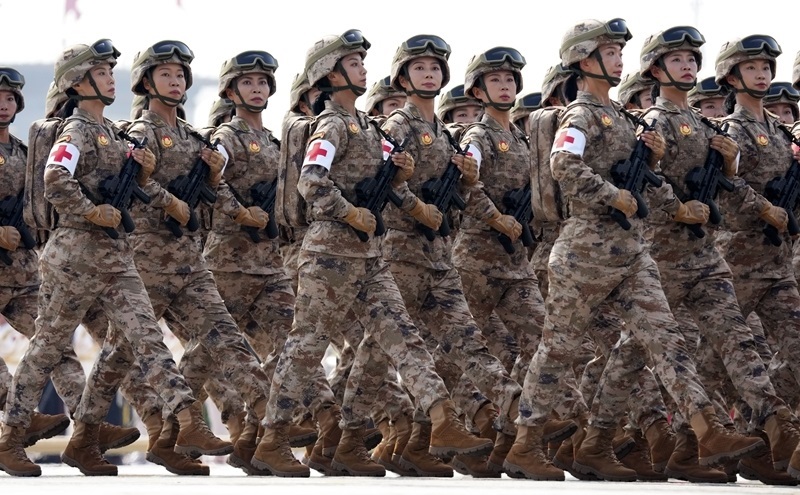 9月3日,紀(jì)念中國人民抗日戰(zhàn)爭暨世界反法西斯戰(zhàn)爭勝利80周年大會在北京隆重舉行。這是信息支援部隊方隊接受檢閱。
