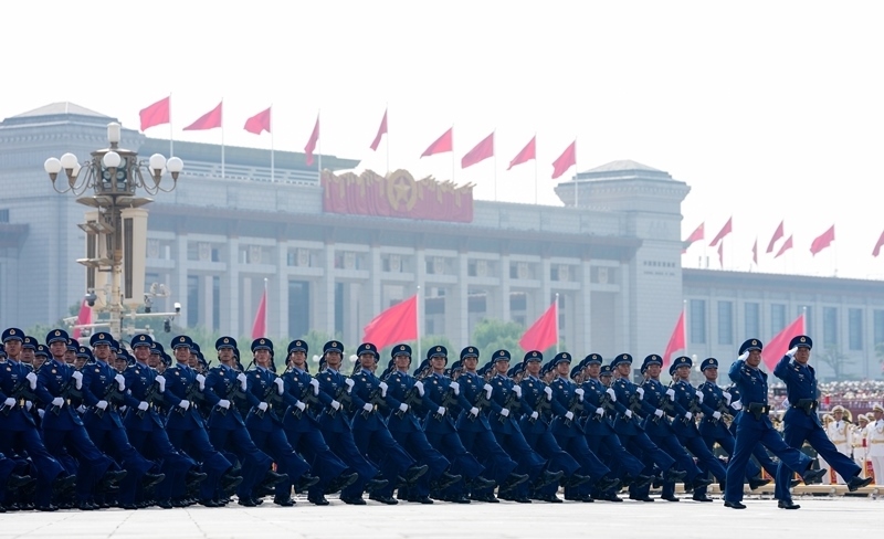 9月3日,紀(jì)念中國人民抗日戰(zhàn)爭暨世界反法西斯戰(zhàn)爭勝利80周年大會在北京隆重舉行。這是空軍方隊接受檢閱。