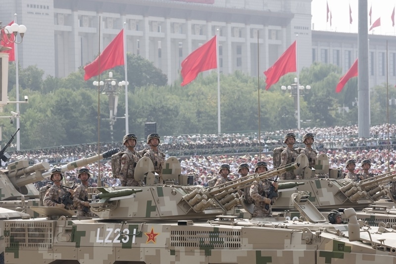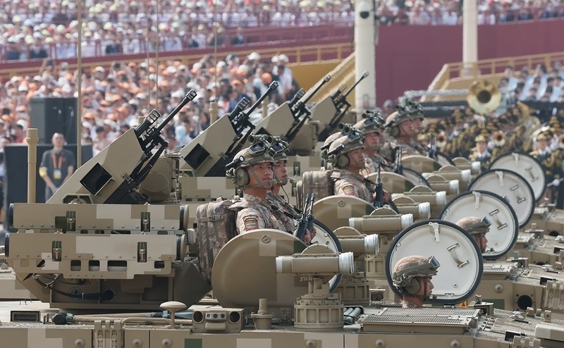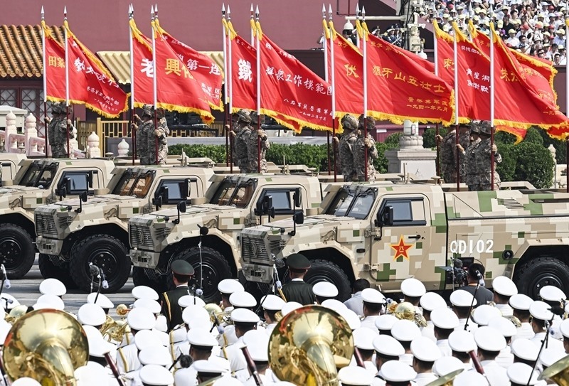 9月3日,紀(jì)念中國人民抗日戰(zhàn)爭暨世界反法西斯戰(zhàn)爭勝利80周年大會在北京隆重舉行。這是信息支援方隊接受檢閱。