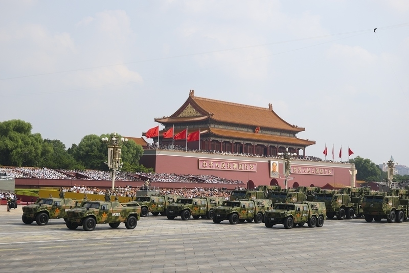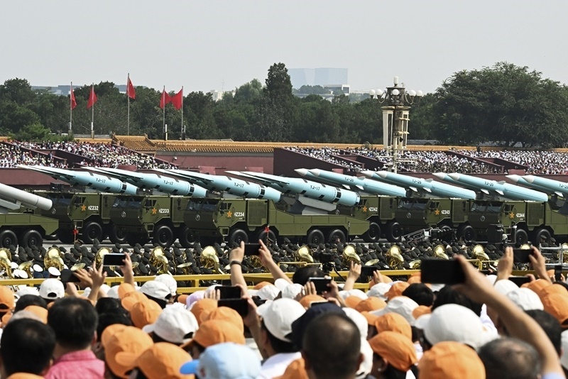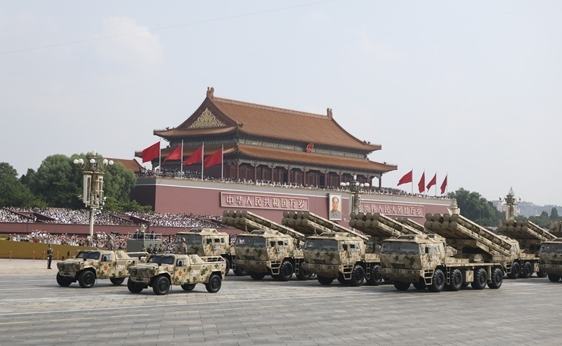 9月3日,紀(jì)念中國人民抗日戰(zhàn)爭暨世界反法西斯戰(zhàn)爭勝利80周年大會在北京隆重舉行。這是火箭軍方隊接受檢閱。