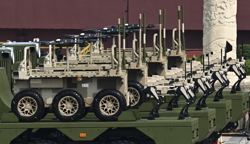 9月3日,紀(jì)念中國人民抗日戰(zhàn)爭暨世界反法西斯戰(zhàn)爭勝利80周年大會在北京隆重舉行。這是陸上無人作戰(zhàn)方隊的裝備。