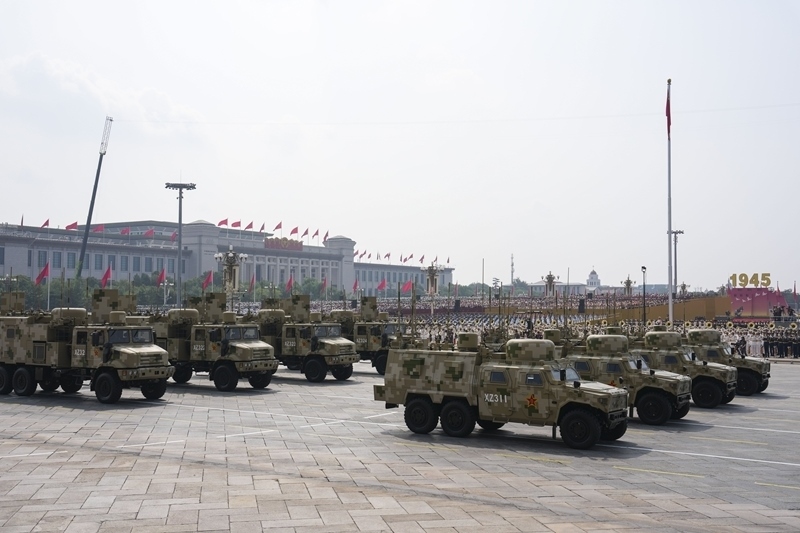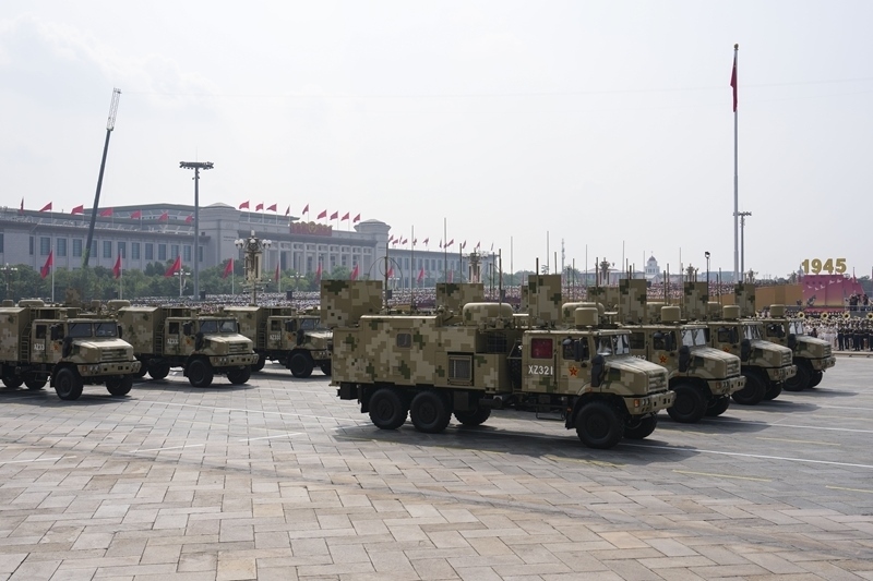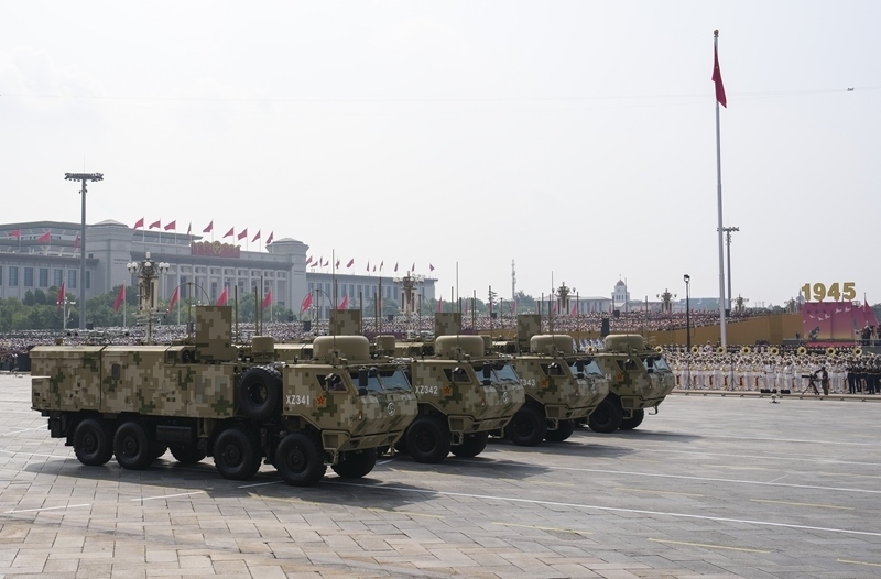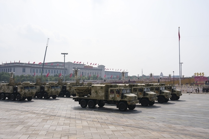 9月3日,紀(jì)念中國人民抗日戰(zhàn)爭暨世界反法西斯戰(zhàn)爭勝利80周年大會在北京隆重舉行。這是預(yù)警探測方隊接受檢閱。