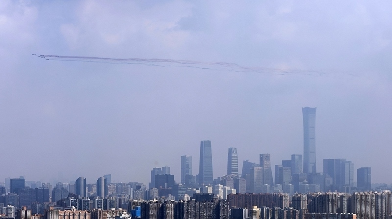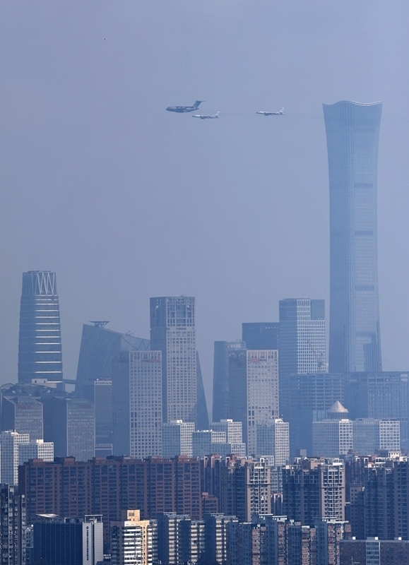 9月3日,紀(jì)念中國人民抗日戰(zhàn)爭暨世界反法西斯戰(zhàn)爭勝利80周年大會在北京隆重舉行。這是教練機(jī)梯隊接受檢閱。