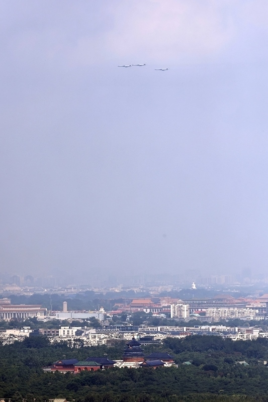 9月3日,紀(jì)念中國人民抗日戰(zhàn)爭暨世界反法西斯戰(zhàn)爭勝利80周年大會在北京隆重舉行。這是轟炸機(jī)梯隊接受檢閱。