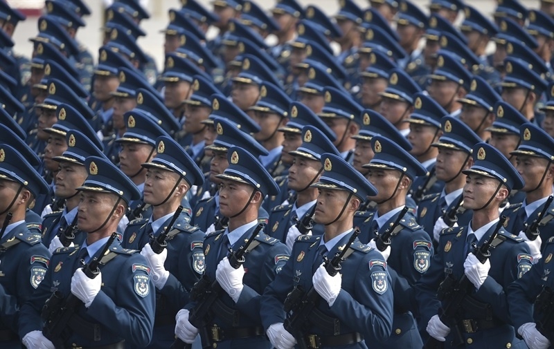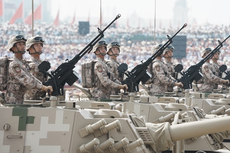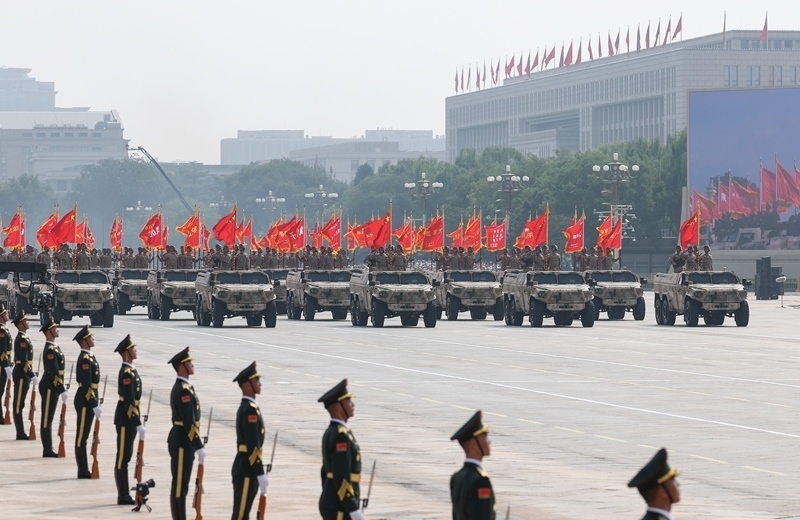 9月3日,紀(jì)念中國人民抗日戰(zhàn)爭暨世界反法西斯戰(zhàn)爭勝利80周年大會在北京隆重舉行。這是網(wǎng)絡(luò)空間作戰(zhàn)方隊(duì)接受檢閱。