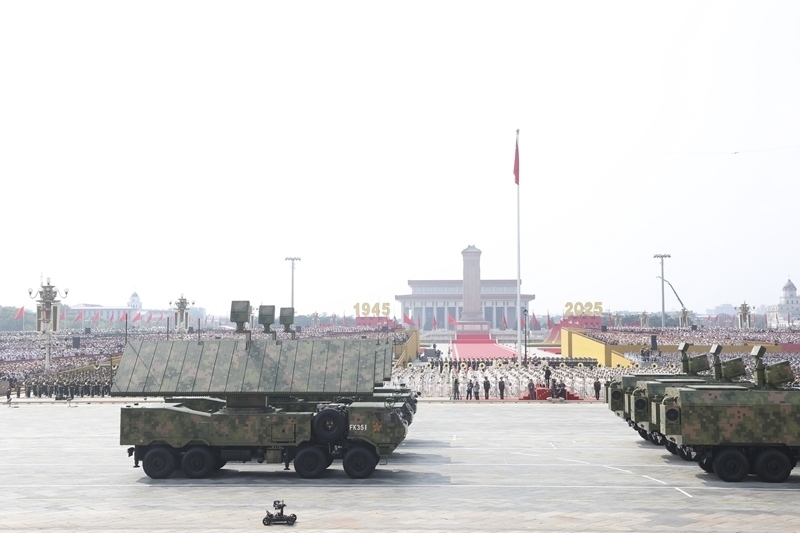 9月3日,紀(jì)念中國人民抗日戰(zhàn)爭暨世界反法西斯戰(zhàn)爭勝利80周年大會在北京隆重舉行。這是反無人機(jī)方隊(duì)接受檢閱。