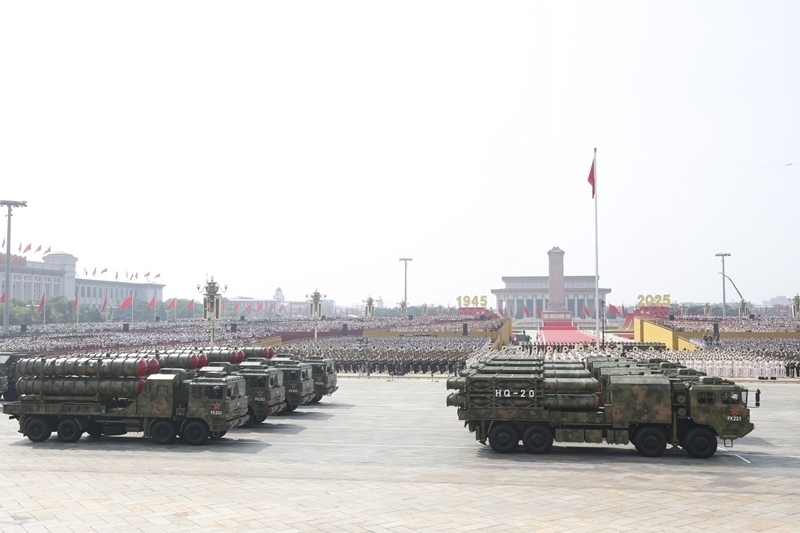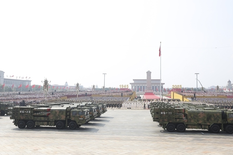 9月3日,紀(jì)念中國人民抗日戰(zhàn)爭暨世界反法西斯戰(zhàn)爭勝利80周年大會在北京隆重舉行。這是對空抗擊方隊(duì)接受檢閱。