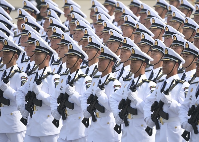 9月3日,紀(jì)念中國人民抗日戰(zhàn)爭暨世界反法西斯戰(zhàn)爭勝利80周年大會在北京隆重舉行。這是艦載防空武器方隊(duì)接受檢閱。