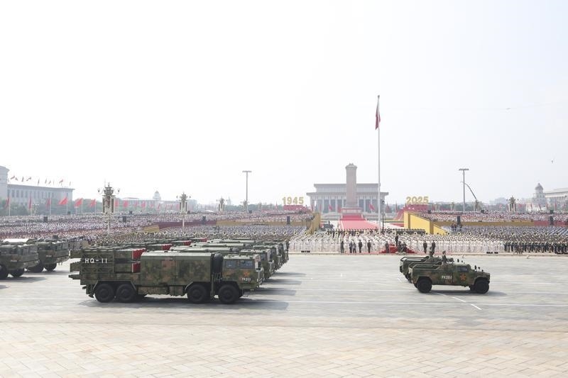 9月3日,紀念中國人民抗日戰(zhàn)爭暨世界反法西斯戰(zhàn)爭勝利80周年大會在北京隆重舉行。這是艦載防空武器方隊接受檢閱。