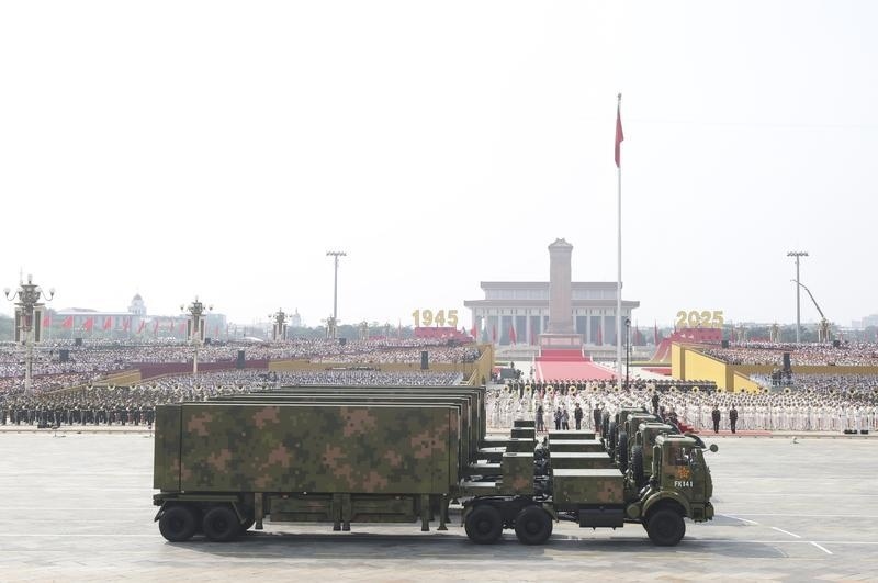 9月3日,紀念中國人民抗日戰(zhàn)爭暨世界反法西斯戰(zhàn)爭勝利80周年大會在北京隆重舉行。這是反艦導(dǎo)彈方隊接受檢閱。