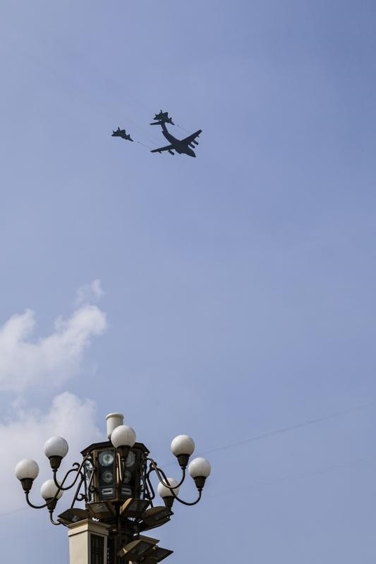 9月3日,紀念中國人民抗日戰(zhàn)爭暨世界反法西斯戰(zhàn)爭勝利80周年大會在北京隆重舉行。這是加受油機梯隊接受檢閱。