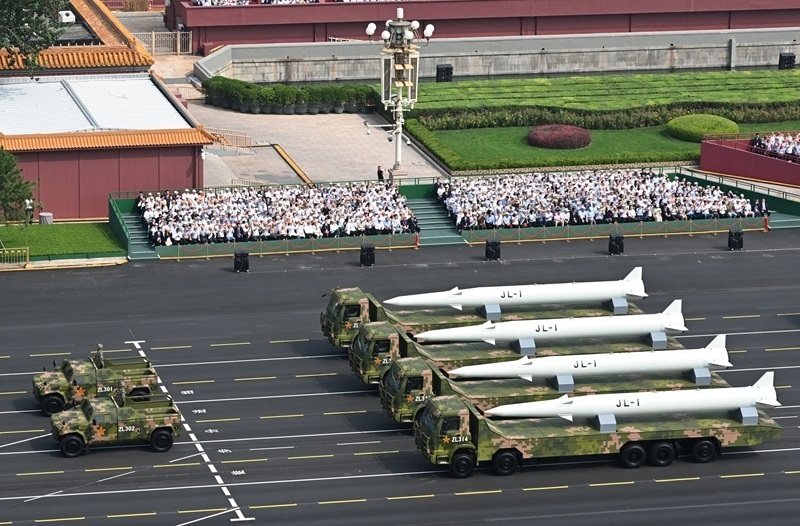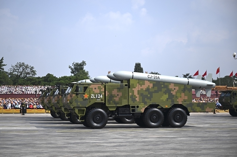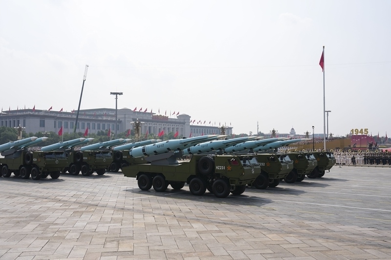 9月3日,紀(jì)念中國人民抗日戰(zhàn)爭暨世界反法西斯戰(zhàn)爭勝利80周年大會在北京隆重舉行。這是高超聲速導(dǎo)彈方隊(duì)接受檢閱。
